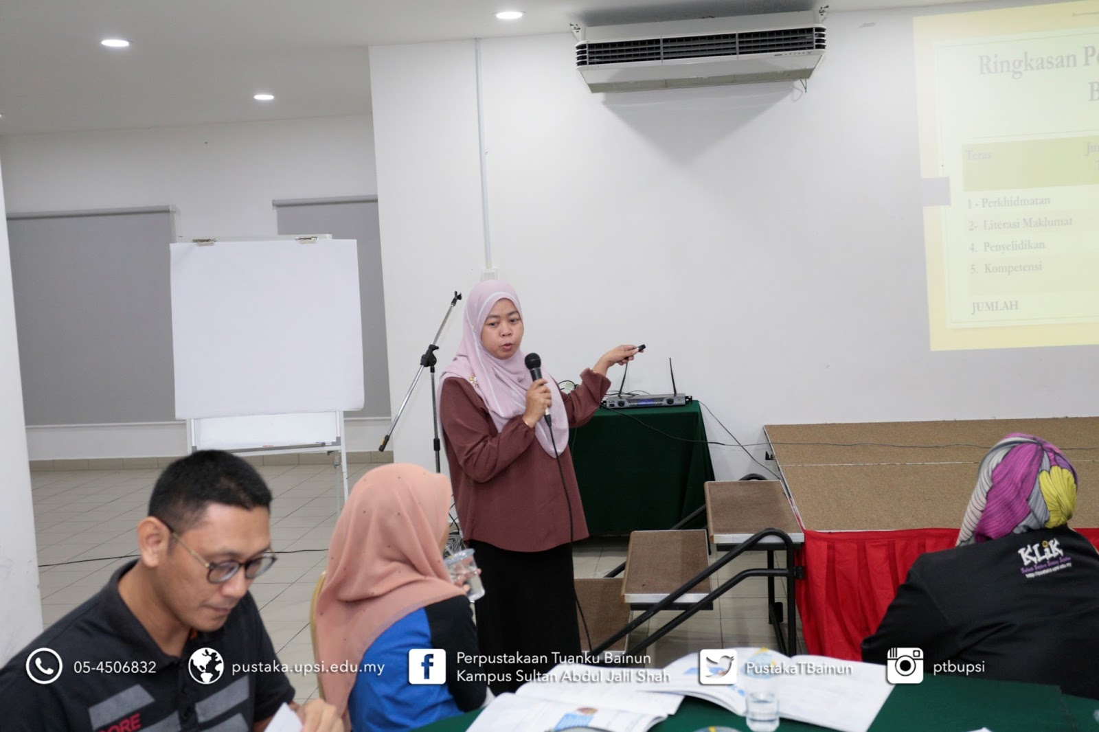 | Penerangan oleh Ketua Unit Literasi Maklumat mengenai pelan strategik yang melibatkan Unit Literasi Maklumat, Encik Afzanizam Dullah Hashim. |