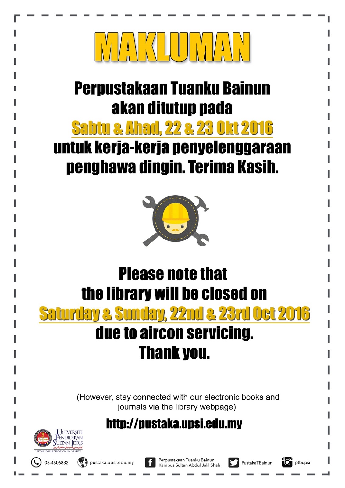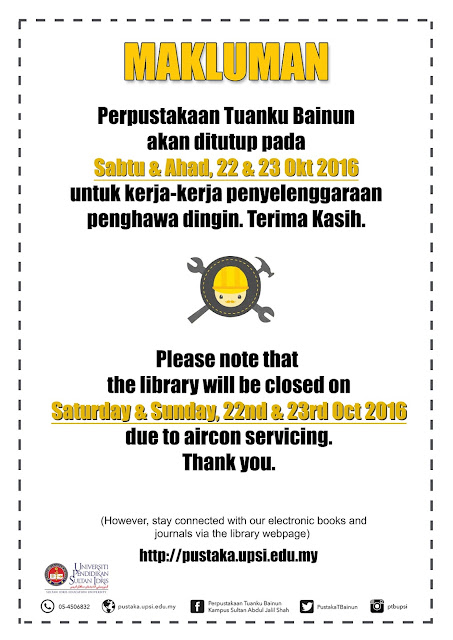 berita@pustaka : Makluman Penutupan Operasi Perpustakaan Sempena Hari Keputeraan DYMM Paduka Seri Sultan Perak