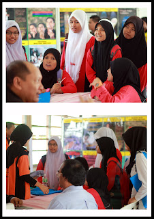 Pelajar-pelajar dan guru-guru yang mengunjungi kaunter Hari Bersama Pelanggan untuk mendapatkan maklumat mengenai perpustakaan dan mendaftar sebagai keahlian luar Perpustakaan Tuanku Bainun.
