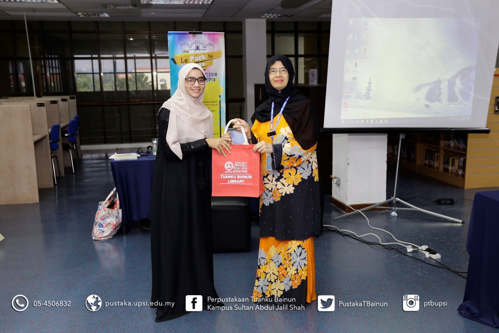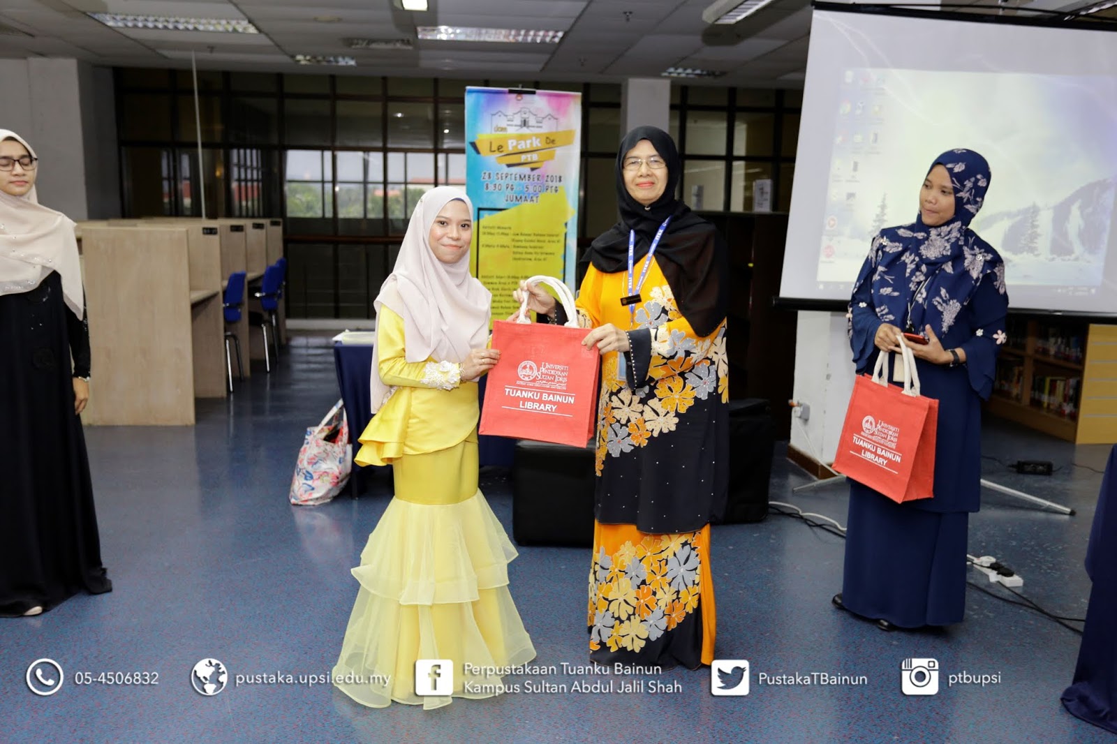| Cenderahati kepada pengajar disampaikan oleh TImbalan Ketua Pustakawan Kanan, Puan Siti Sumaizan |