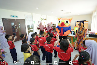 Bergambar kenangan di akhir program bersama kakitangan dan Dr. Hoothoot |