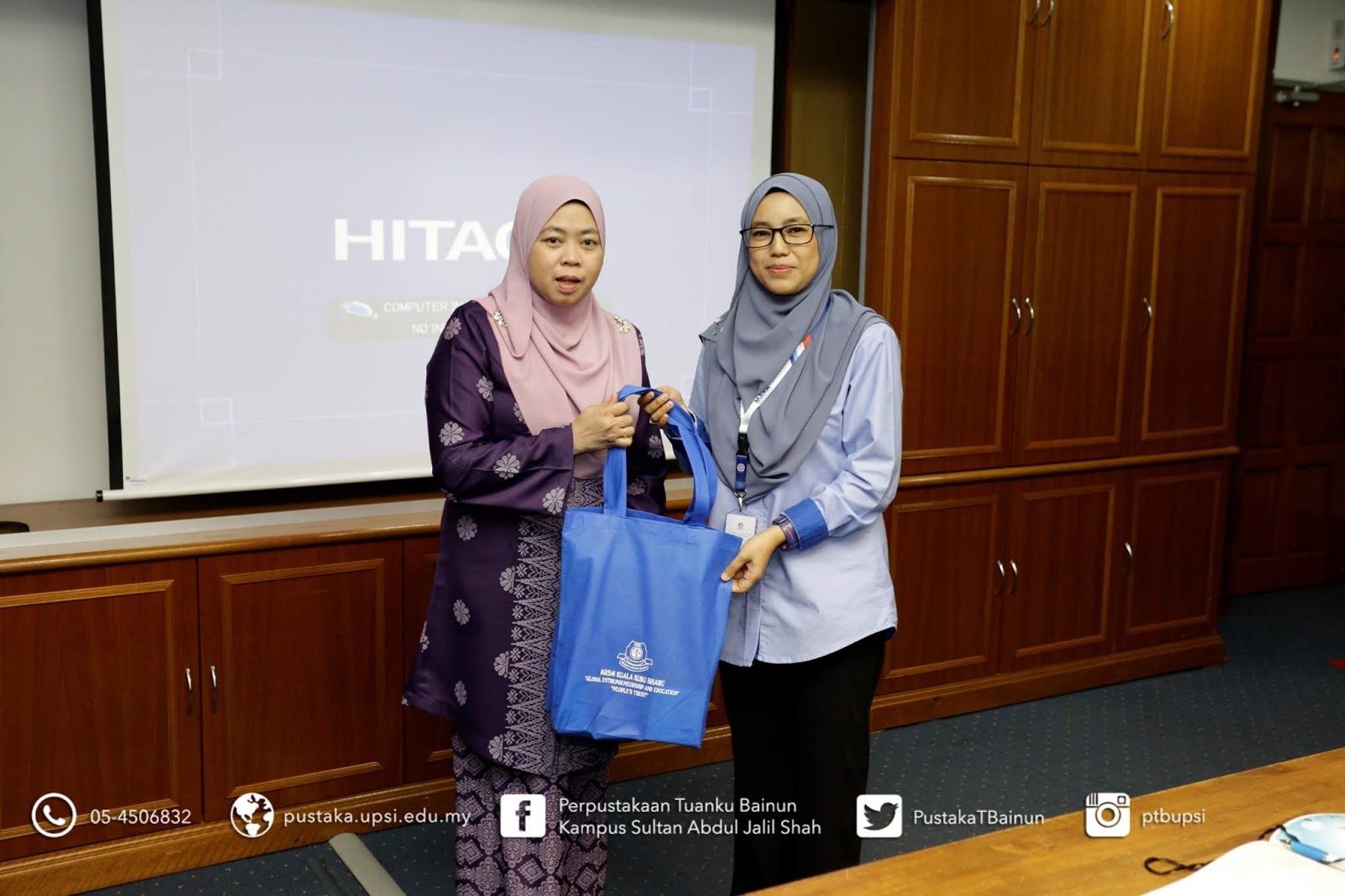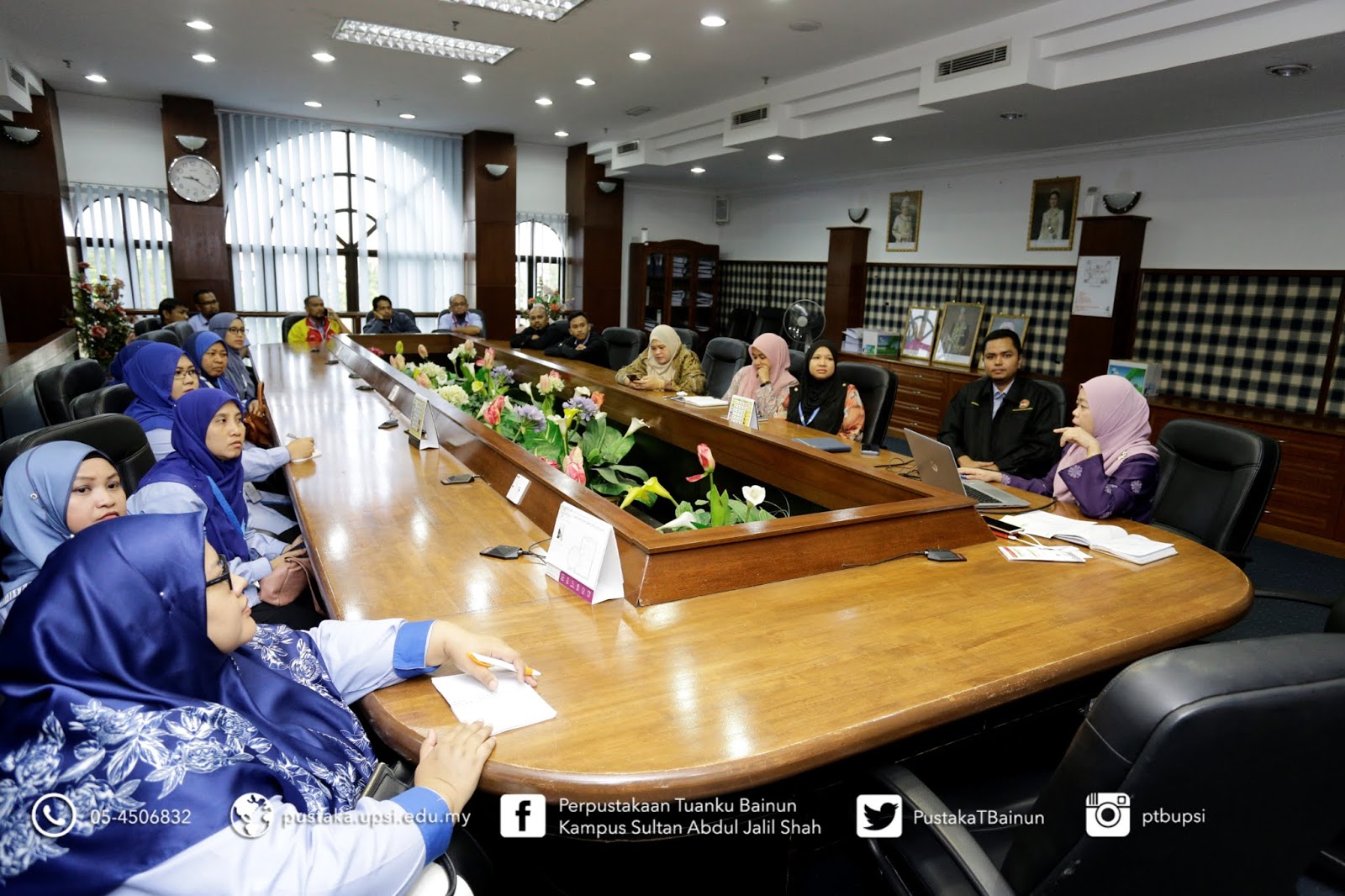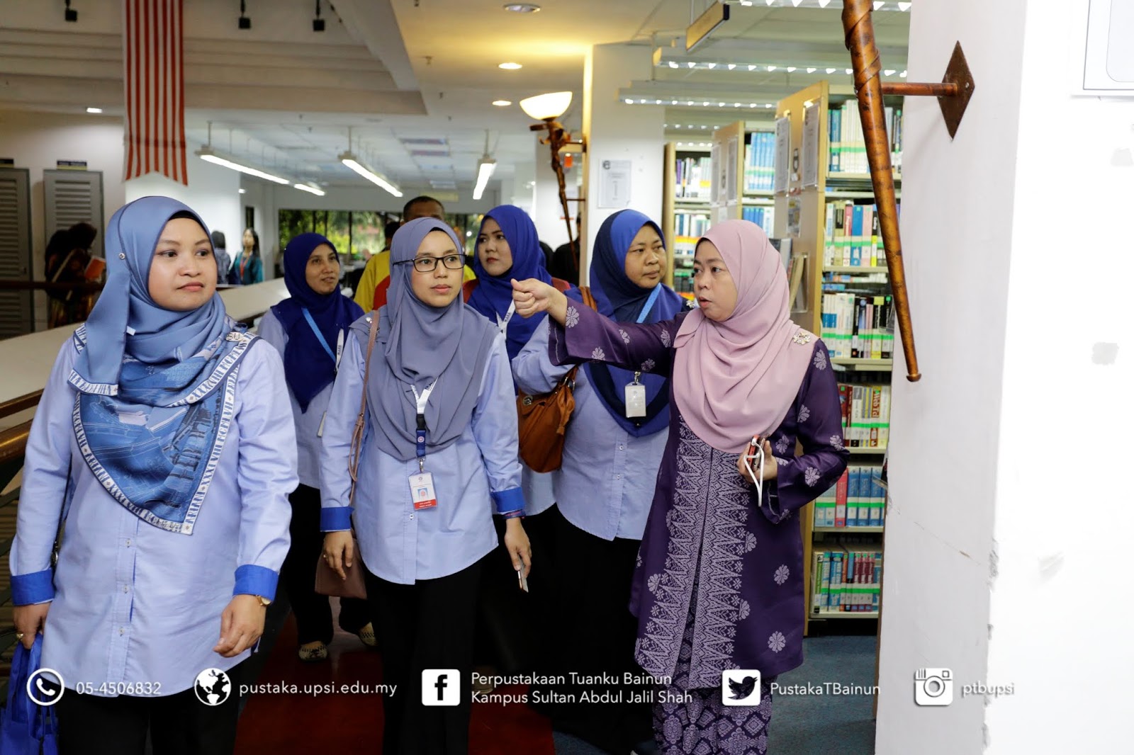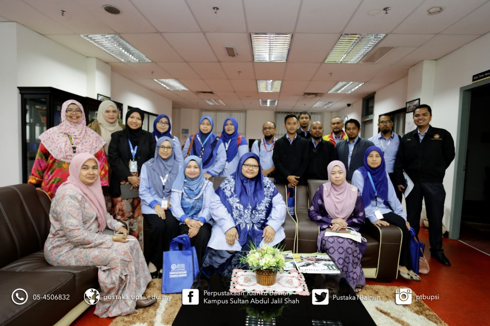 | Bergambar bersama kakitangan PTB di ruang tamu, pejabat pentadbiran perpustakaan, Aras 4 |