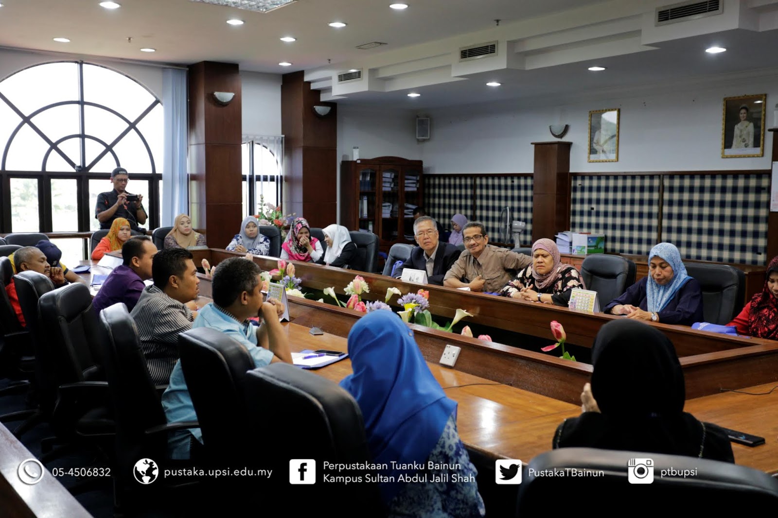 14 Mei 2018 — Perpustakaan Tuanku Bainun telah menerima pelawat daripada Perpustakaan Kuala Lumpur seramai 30 orang yang terdiri daripada staf perpustakaan dan 5 orang ahli lembaga penasihat. Lawatan penandaarasan ini adalah bertujuan untuk melihat beberapa perkara iaitu pembangunan koleksi digital, perkhidmatan dan fasiliti terkini dan juga perkhidmatan ‘e-services dan e-collections’. Lawatan kerja ini telah diketuai oleh YBhg Datuk Mariany bt Mohamad Yit, Pengerusi Jawatankuasa Penasihat Pembangunan Modal Insan. Pihak Perpustakaan Tuanku Bainun mengucapkan jutaan terima kasih kepada pihak Perpustakaan Kuala Lumpur (PKL) atas kesudian melawat ke tempat kami. Diharap, semoga perkongsian ini memberi manfaat yang cukup baik dan semoga jalinan ukhwah akan terus terjalin diantara dua organisasi ini.