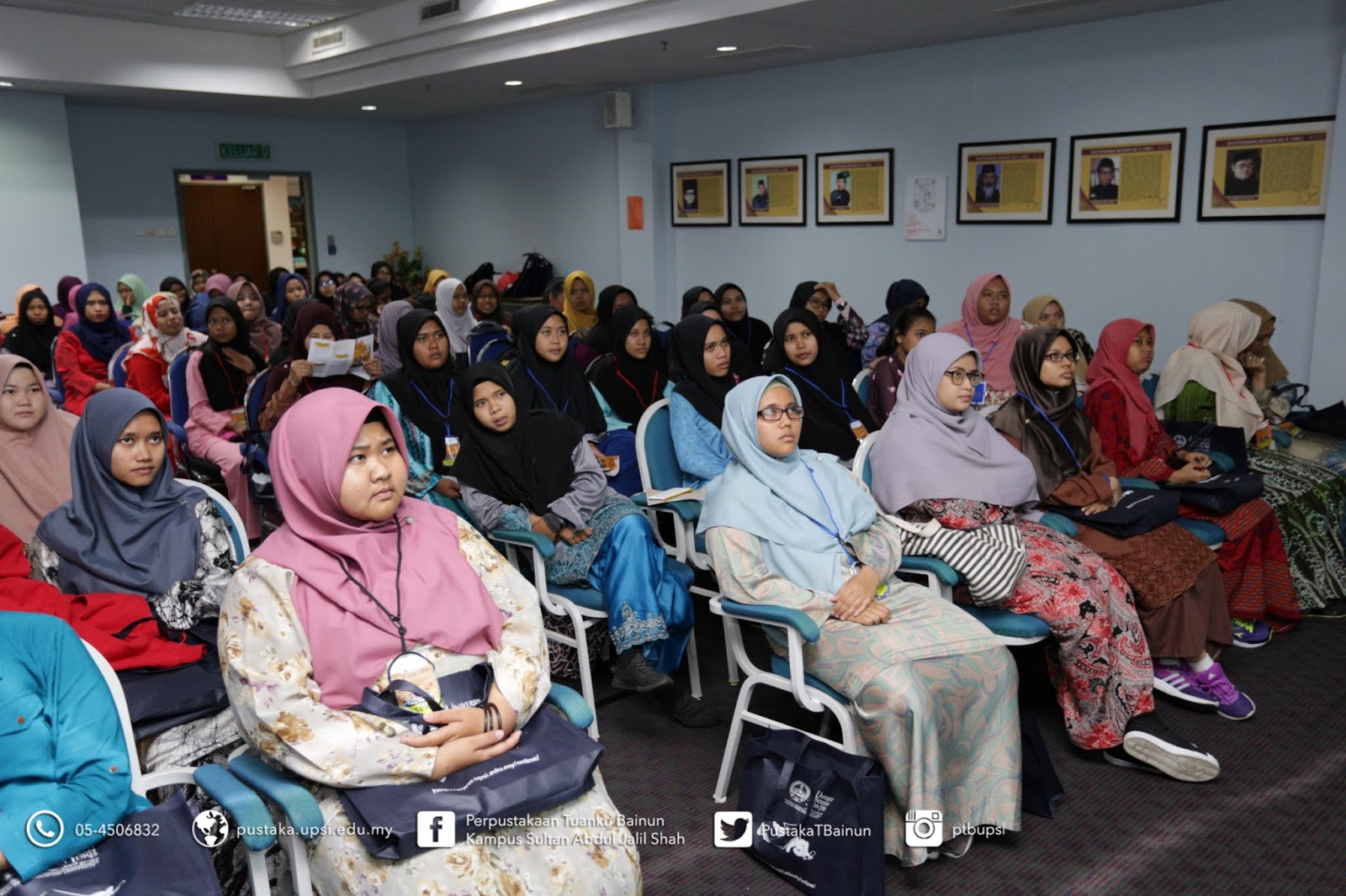 | Pelajar mendengar taklimat di dalam Bilik Seminar Perpustakaan Tuanku Bainun |
