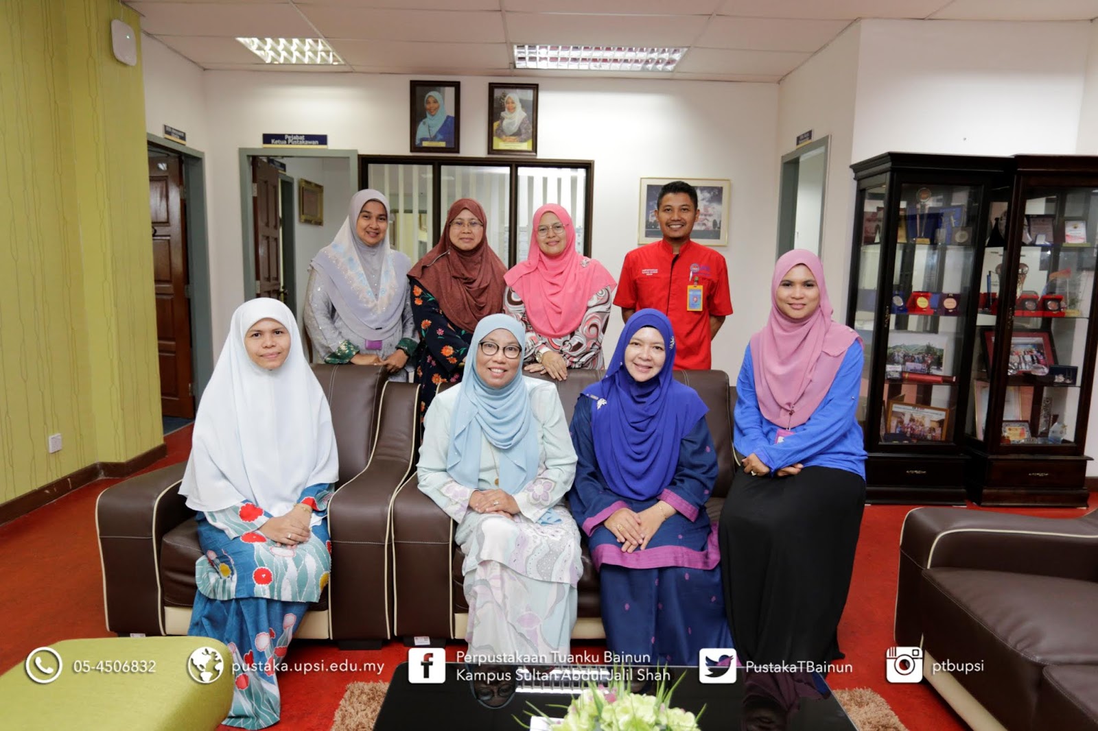 | Bergambar bersama Ketua Pustakawan di ruang pejabat beliau. |