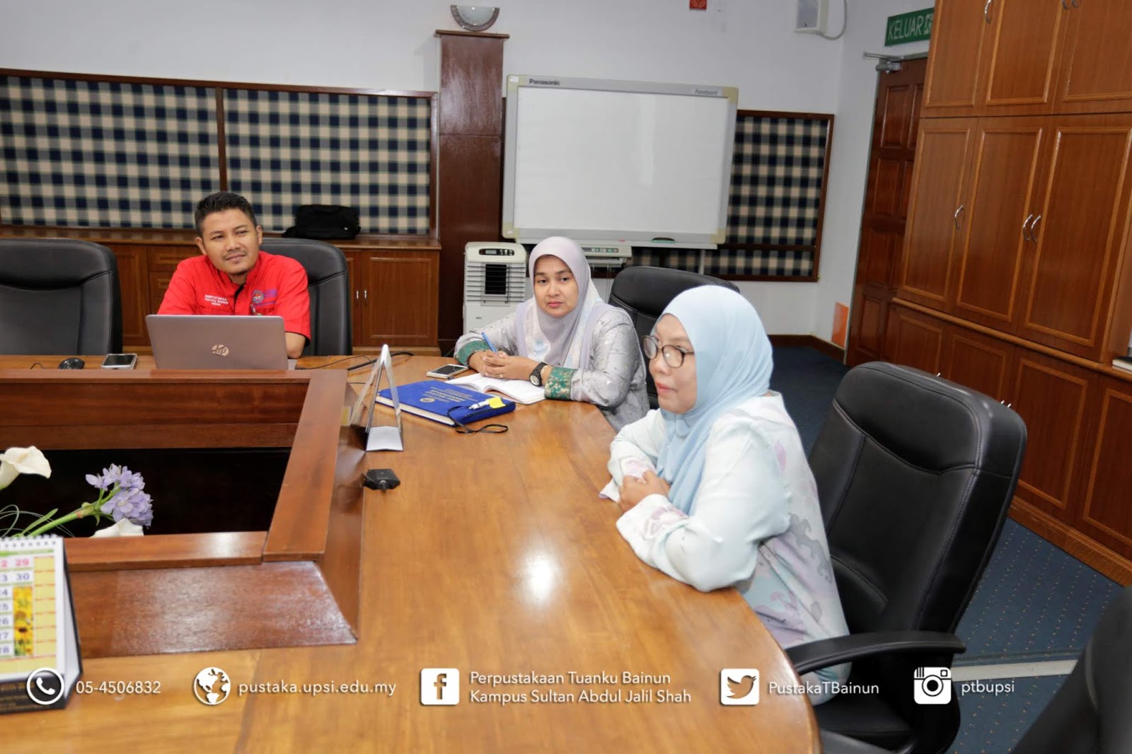 Perbincangan di dalam Bilik Mesyuarat Utama PTB dan turut dihadiri oleh Ketua Pustakawan, Puan Rusliza Yaacob
