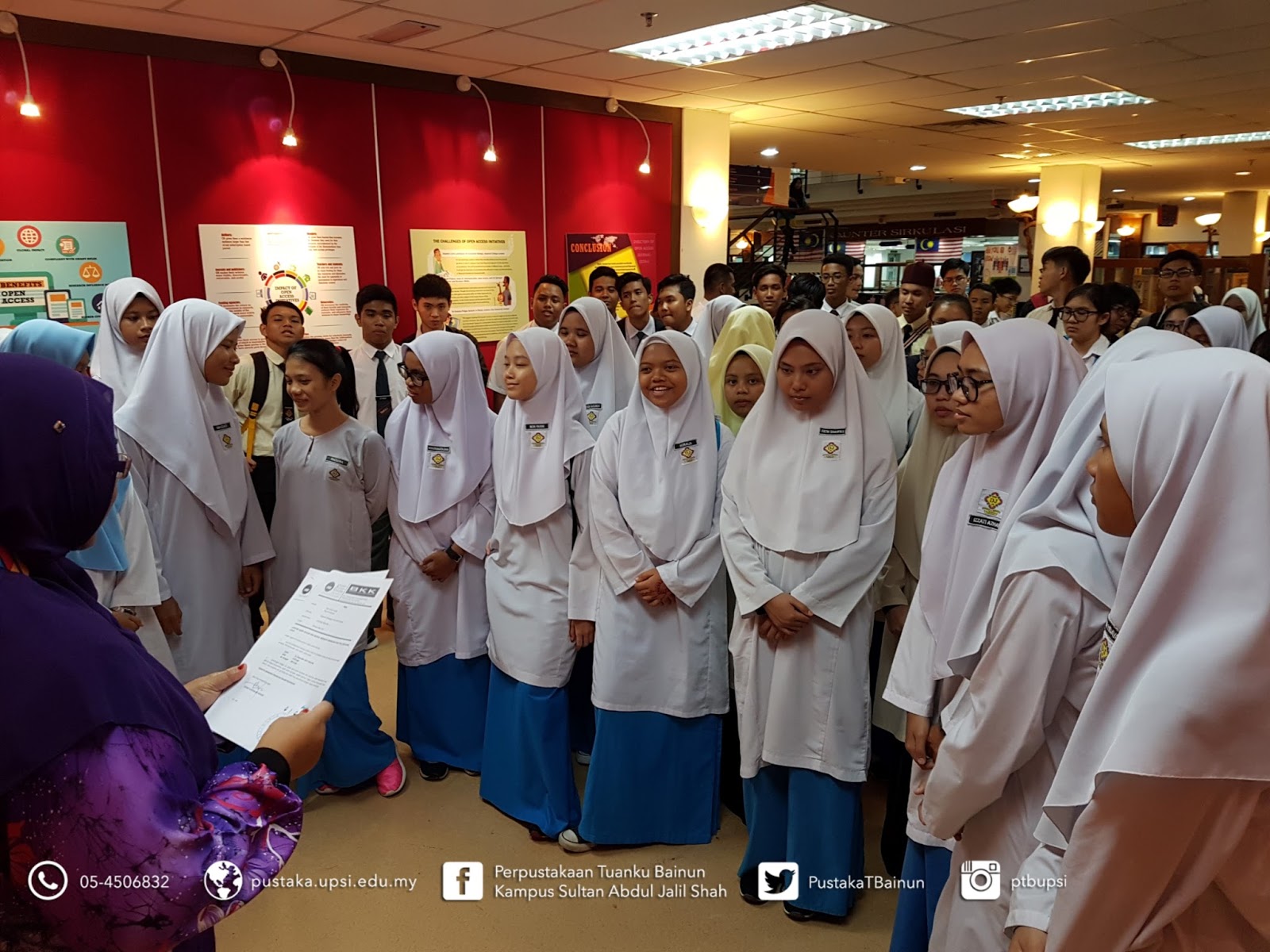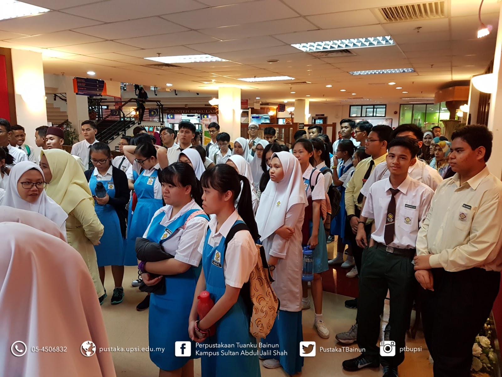21 September 2017 — Perpustakaan Tuanku Bainun telah menerima lawatan daripada pelajar Sekolah Menengah Kebangsaan Damai Jaya, Johor Bharu, Johor seramai 86 orang termasuk pelajar dan guru pengiring. Lawatan ini telah dibawa oleh Bahagian Komunikasi Korporat (BKK) UPSI ke perpustakaan pada jam 9.00 pagi