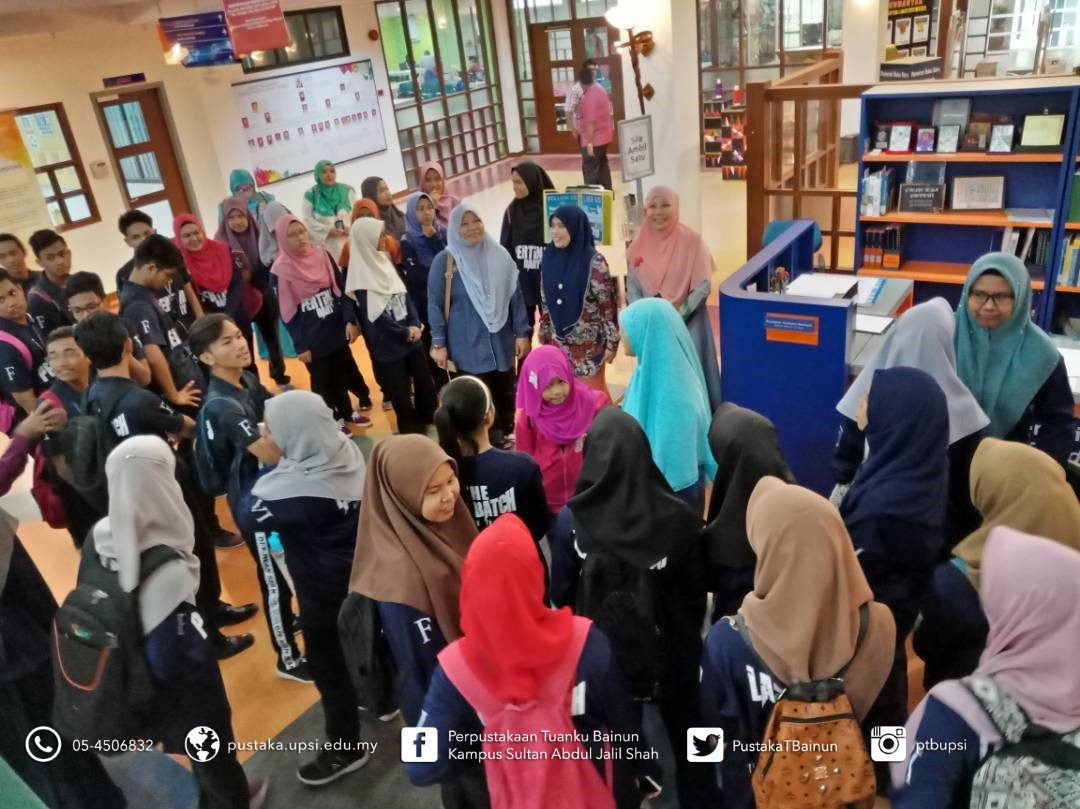 27 April 2018 — Perpustakaan Tuanku Bainun telah menerima lawatan daripada pelajar SMK Dato’ Abdul Rahman Yaakub, Bota, Perak seramai 49 orang termasuk pelajar dan guru pengiring. Lawatan ini telah dibawa oleh Bahagian Komunikasi Korporat (BKK) UPSI ke perpustakaan pada jam 10.00 pagi