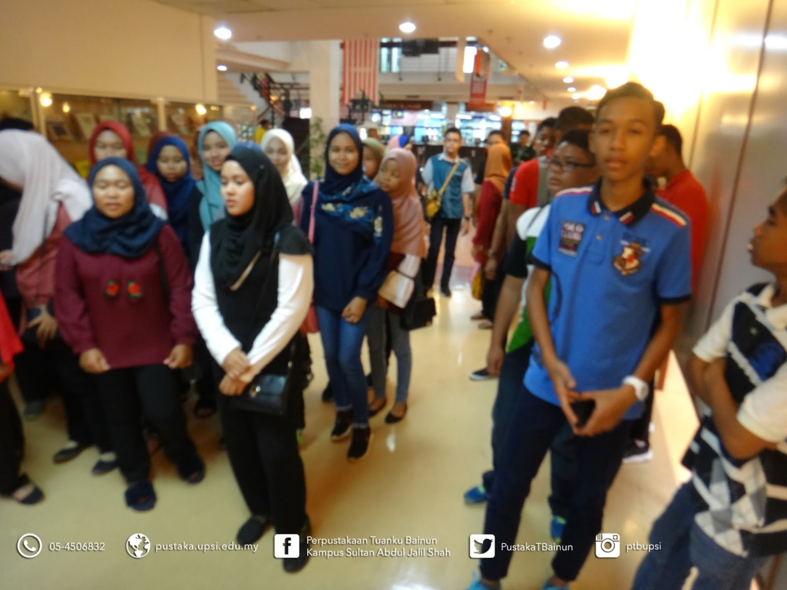 | Pelajar berkumpul untuk mendengar taklimat perpustakaan |