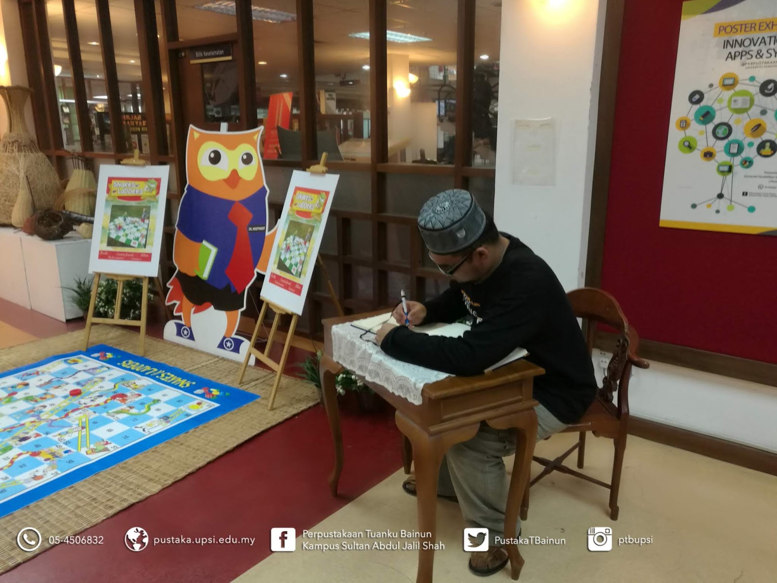| Guru pengiring menulis di Buku Lawatan Perpustakaan |