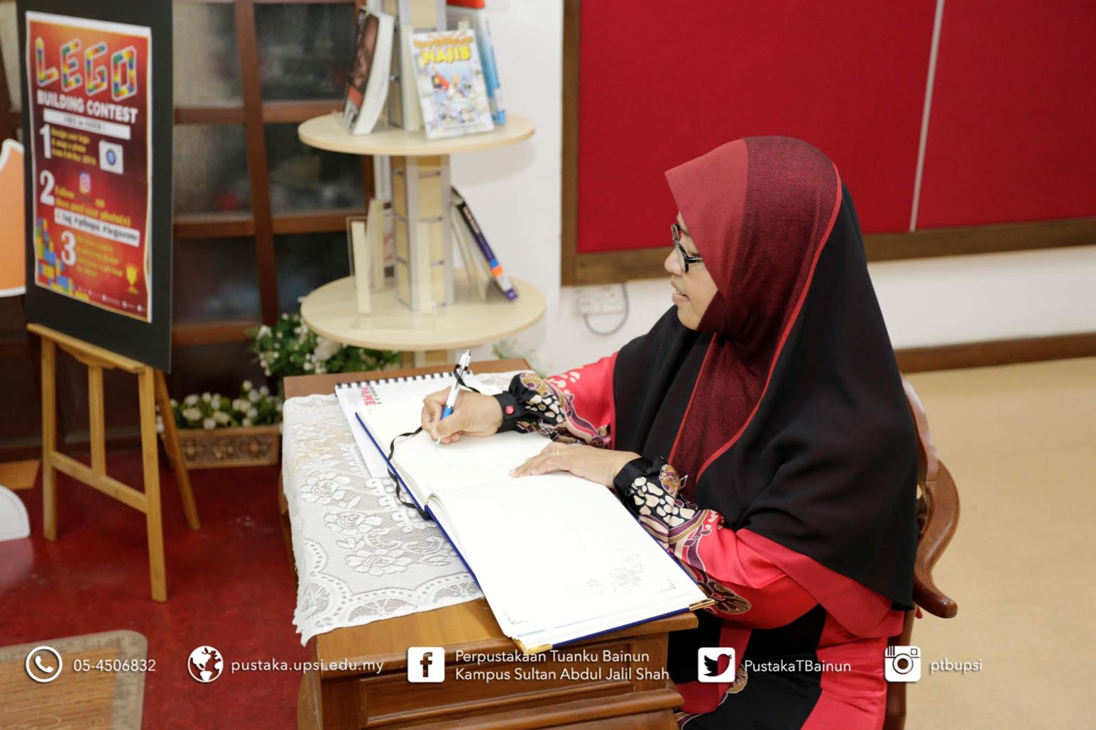 | Wakil guru membuat catatan di Buku Rekod Pelawat Perpustakaan |