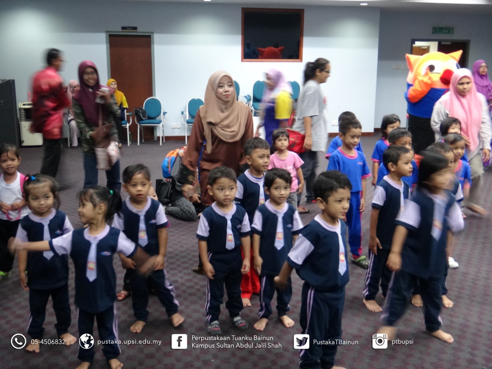 28 September 2017 — Perpustakaan Tuanku Bainun telah menerima lawatan daripada pelajar Tabika KEMAS Daerah Muallim seramai 45 orang termasuk pelajar, guru pengiringdan ibubapa pelajar. Lawatan ini bersempena dengan program Open Day Unit Serial Media. Pelbagai aktiviti telah dijalankan untuk menghiburkan kanak-kanak ini. Antaranya :