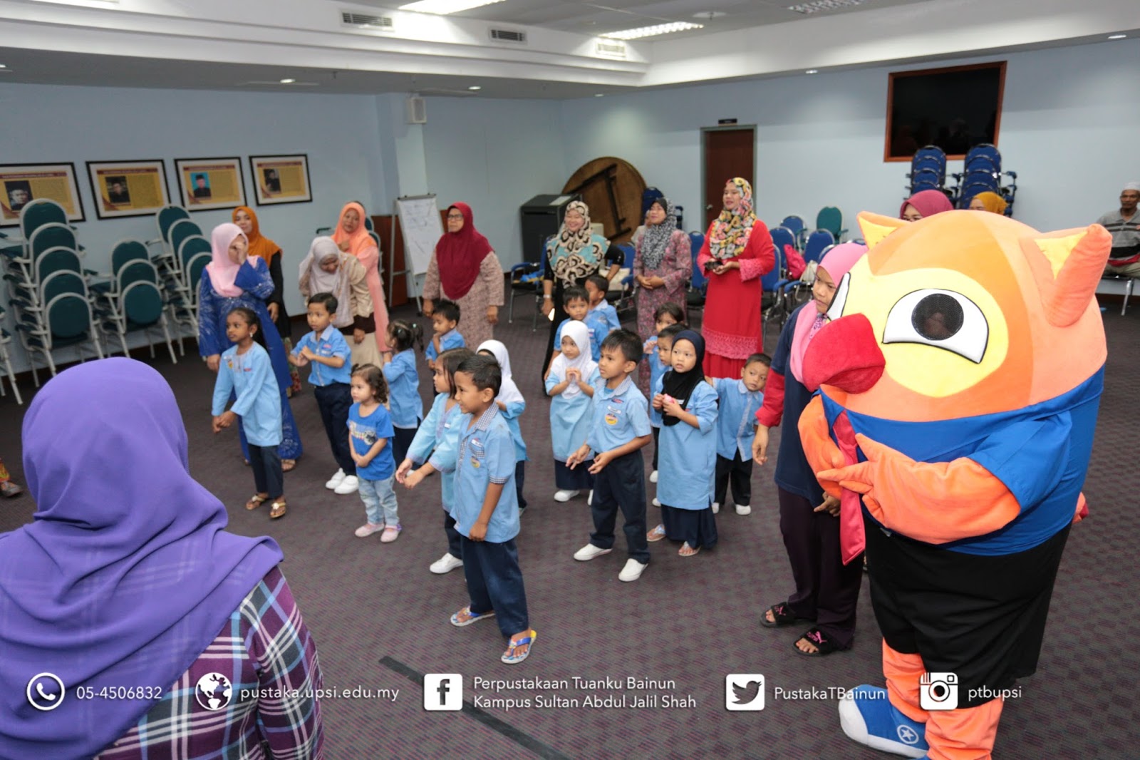 8 Januari 2018 — Perpustakaan Tuanku Bainun telah menerima lawatan daripada murid Tabika KEMAS Kampung Batu 8, Tanjong Malim seramai 33 orang iaitu 18 orang pelajar, seorang guru pengiring dan 14 orang ibubapa murid. Pelbagai aktiviti telah dijalankan sepanjang lawatan. Lawatan bermula pada jam 9.00 pagi dan berakhir pada jam 11.00 pagi