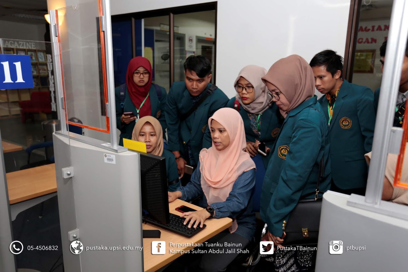 | Pustakawan menerangkan mengenai pencarian bahan melalui OPAC |