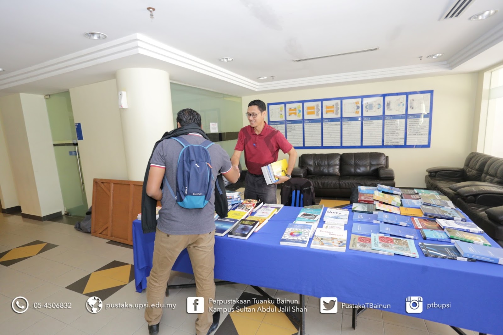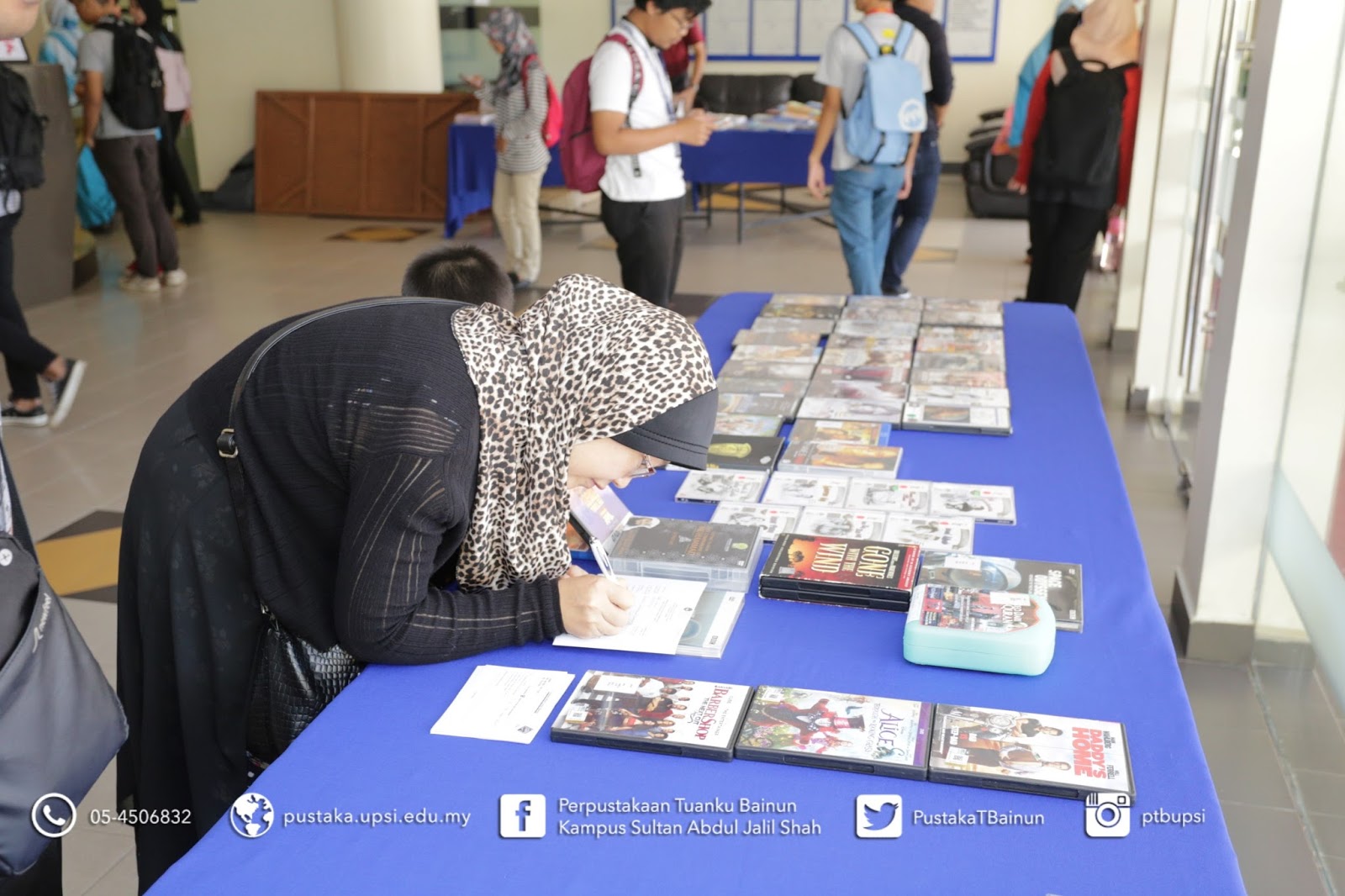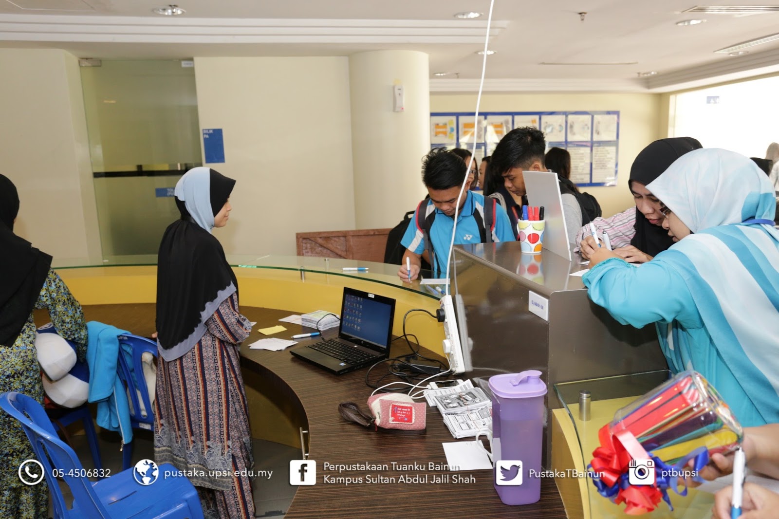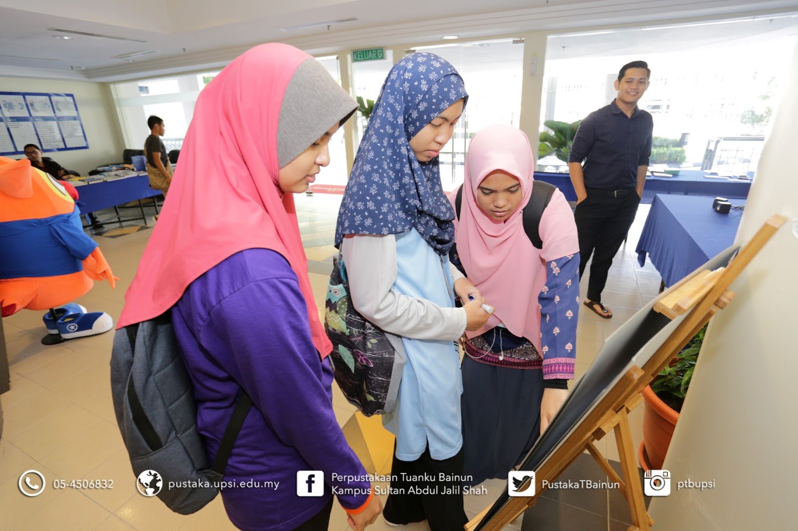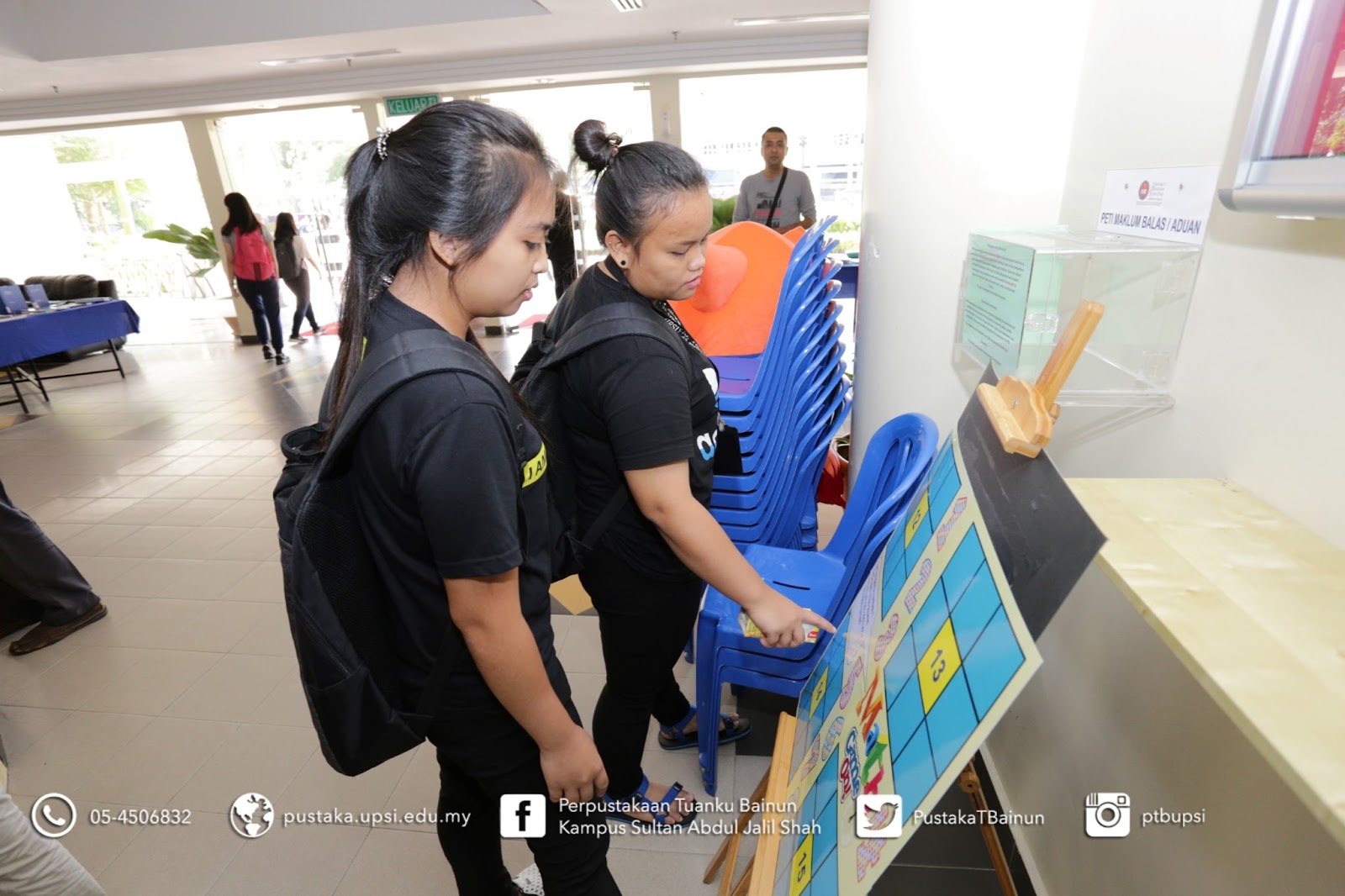 22 Mac 2017 – Perpustakaan Tuanku Bainun telah menganjurkan Library Roadtour pada 21 dan 22 Mac 2017, bertempat di Foyer Aras Bawah, Bangunan E-Learning, Kampus Sultan Abdul Jalil Shah UPSI. Objektif utama aktiviti ini adalah untuk mempromosikan perkhidmatan serta kemudahan yang disediakan oleh Perpustakaan Tuanku Bainun. Pelbagai aktiviti diadakan untuk menarik pelajar dan pensyarah menyertai aktiviti ini diantaranya Jom Cari Bahan@Perpustakaan, New Book’s Alert (What’s new@library), Books on Wheels dan Fun Corner. Sepanjang aktiviti ini dijalankan, seramai 215 orang pelajar dan pensyarah telah berkunjung ke booth Library Roadtour @ E-Learning. Diharap program ini mendapat impak yang positif kepada Perpustakaan Tuanku Bainun dan warga UPSI.
