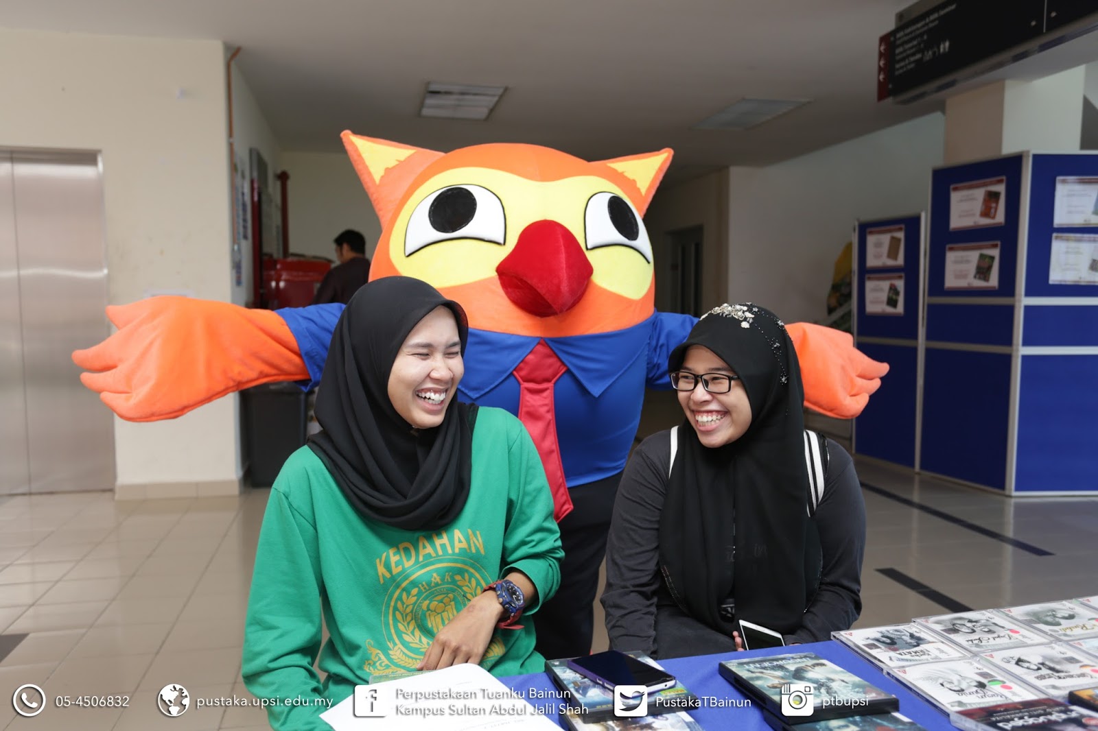 | Dr. Hoothoot bersama pelajar yang berkunjung ke Library Roadtour@FSM |