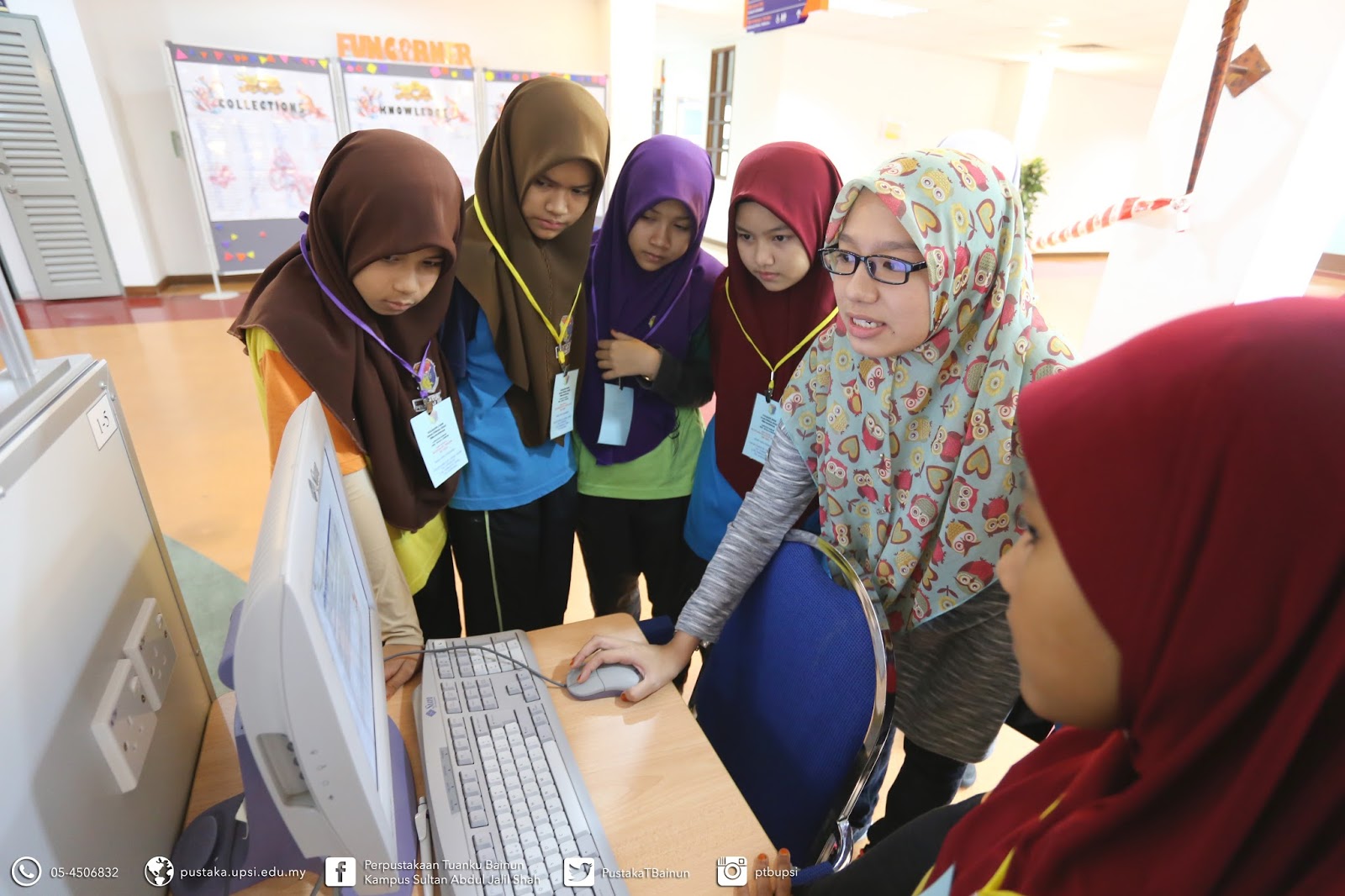 Pelajar UPSI menunjukkan cara pencarian bahan di dalam perpustakaan menerusi sistem OPAC |
