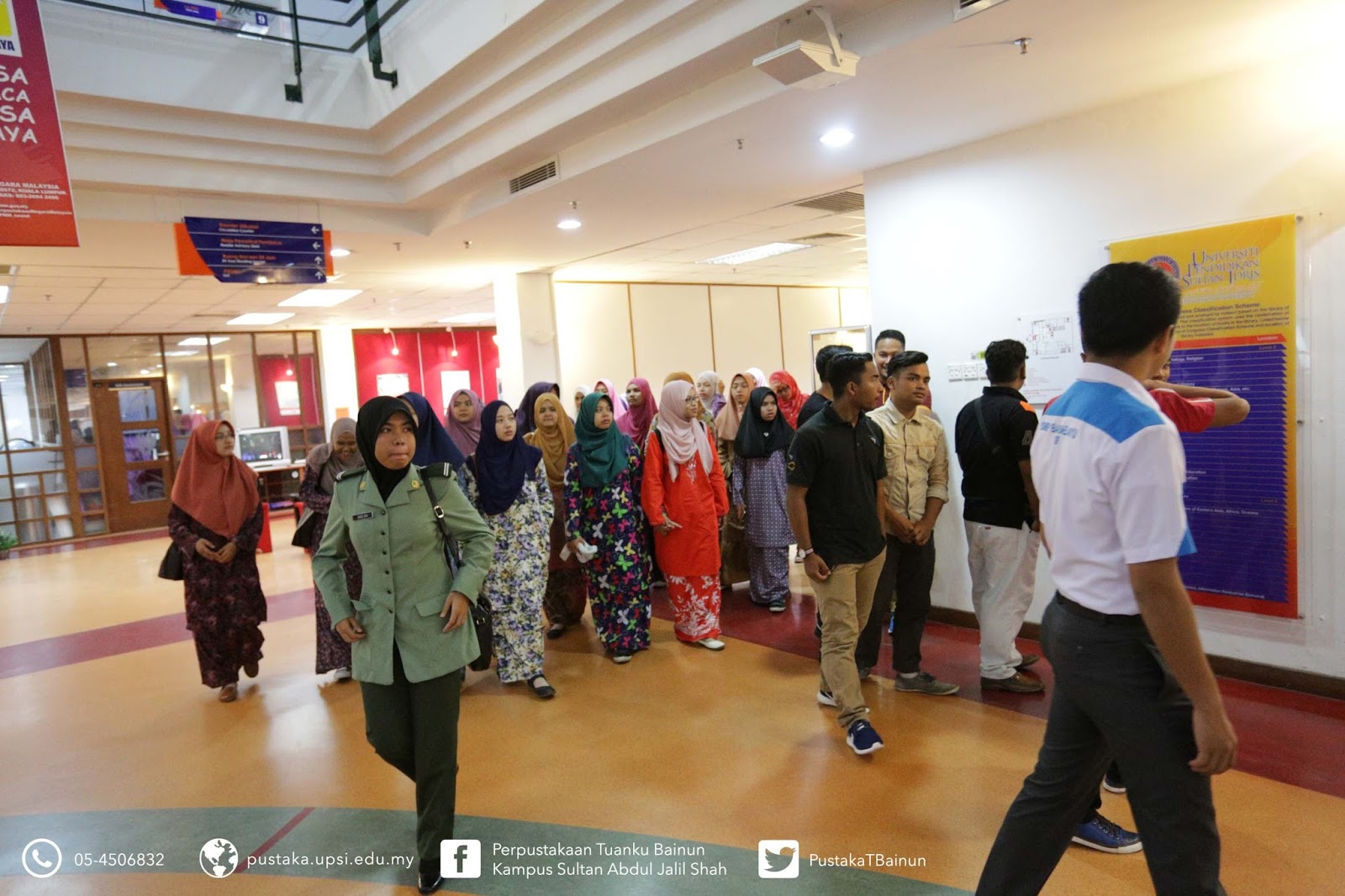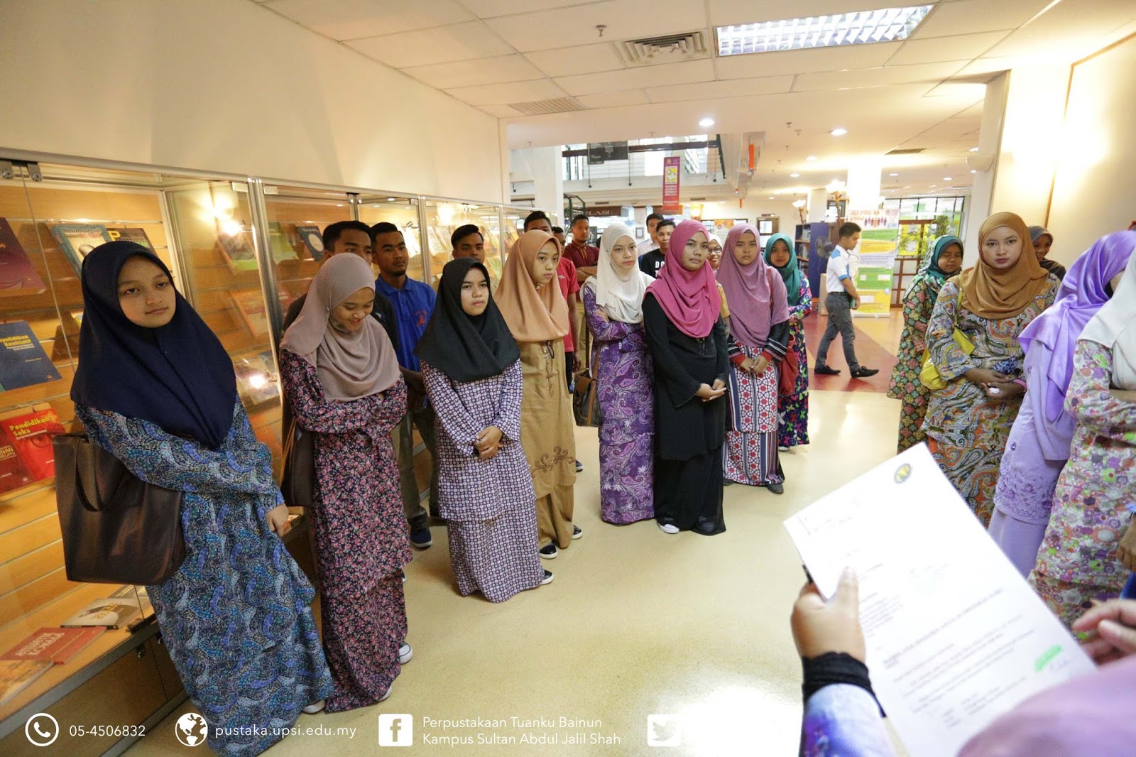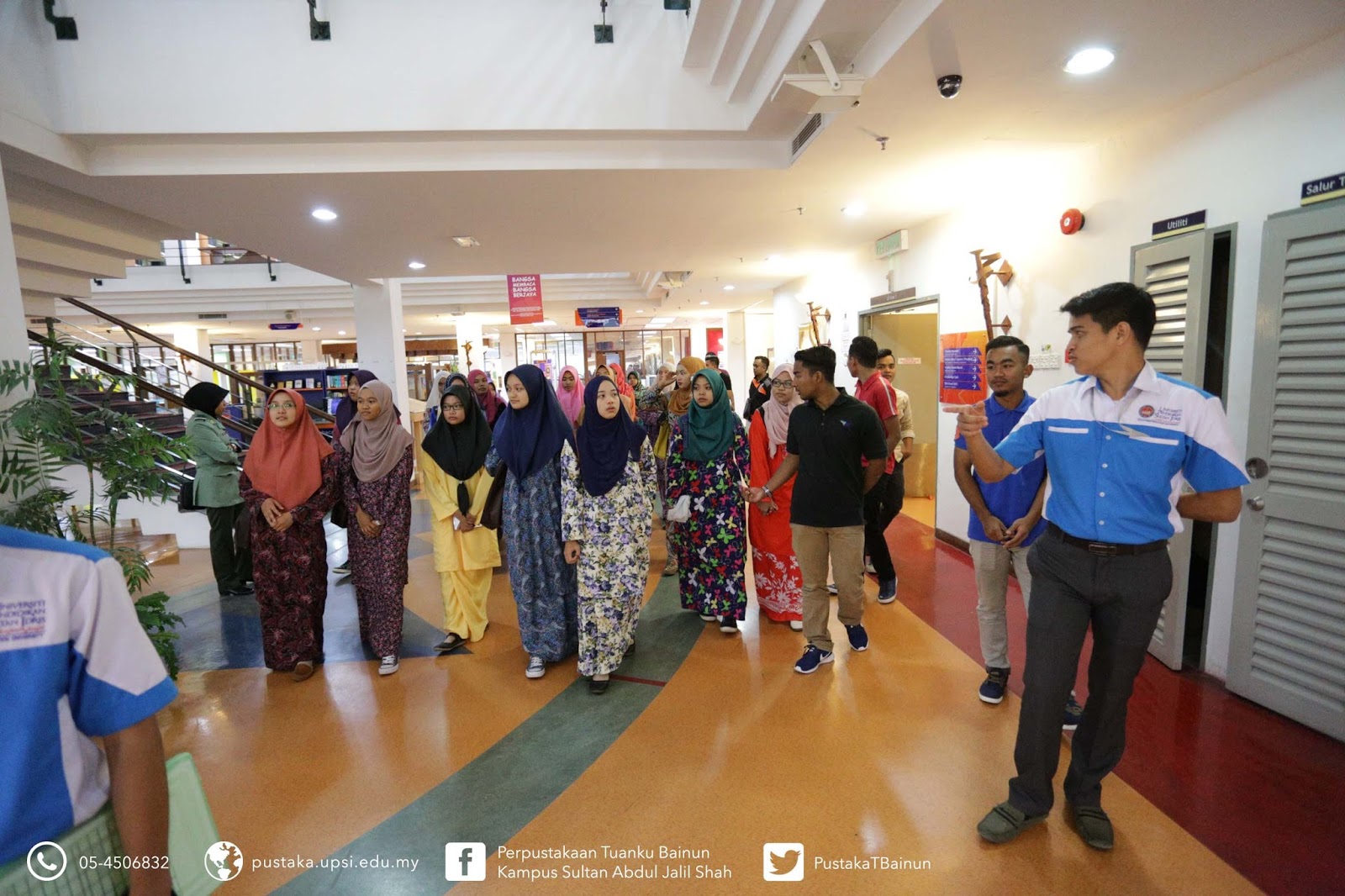 | Di bawa melawat sekitar perpustakaan oleh pelajar UPSI daripada Persatuan Bahasa Melayu (PERBAYU) |