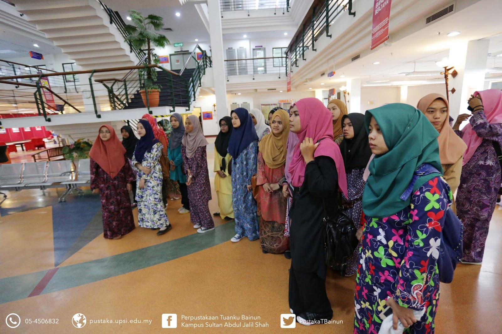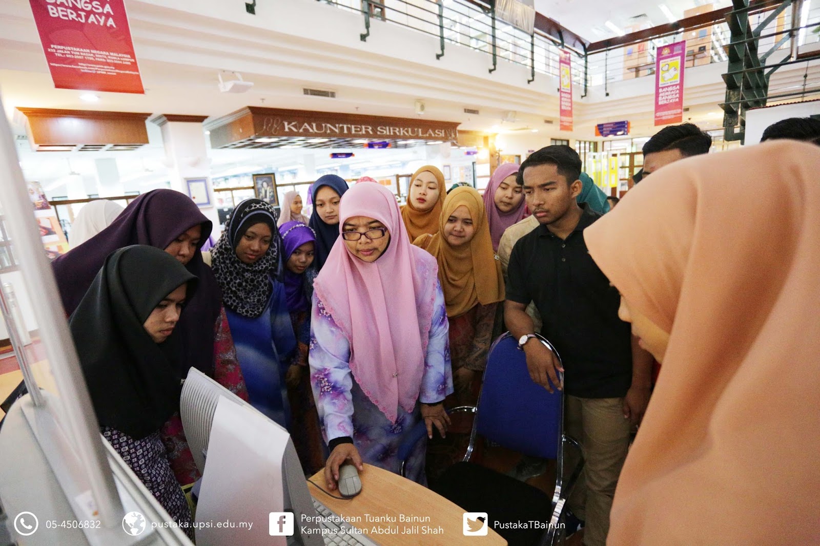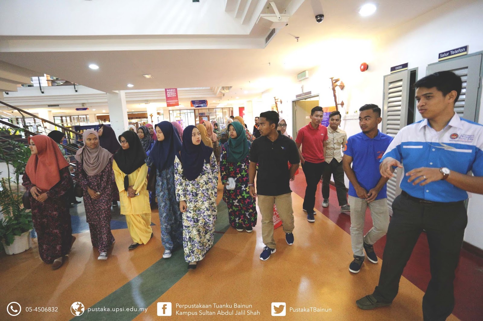 | Di bawa melawat sekitar perpustakaan oleh pelajar UPSI daripada Persatuan Bahasa Melayu (PERBAYU) |