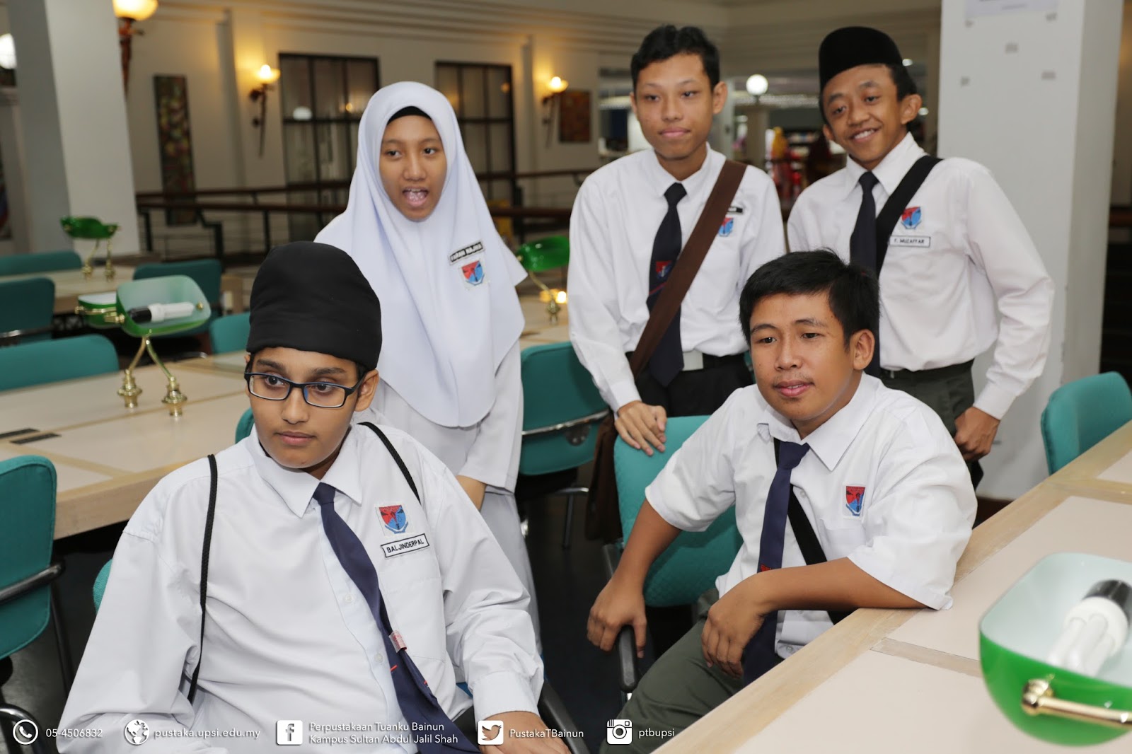 | Pelajar-pelajar mendengar taklimat perpustakaan |
