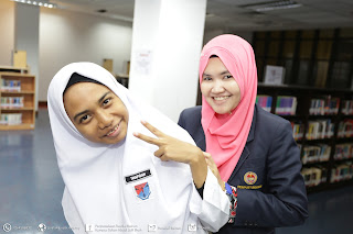 | Pelajar-pelajar teruja melihat koleksi novel yang terdapat di perpustakaan |