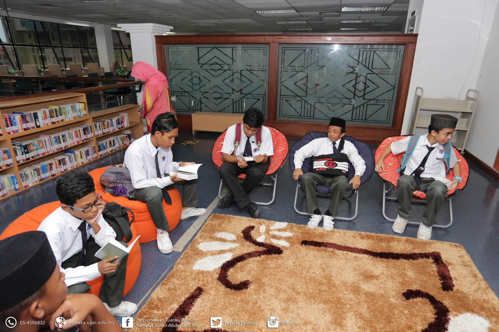 Pelajar-pelajar berehat di ruangan bacaan novel, aras 4 perpustakaan |