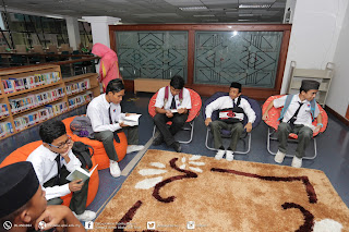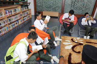 Pelajar-pelajar teruja melihat koleksi novel yang terdapat di perpustakaan |