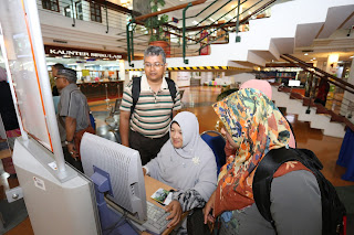 Pelajar-pelajar mengikuti taklimat dan mencari bahan menerusi komputer yang disediakan |